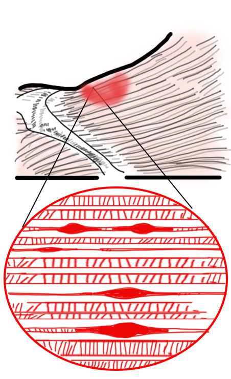 - 在按壓肌肉時會感受到一條一條緊繃的感覺,我們稱之為肌肉緊束(Taut Band)。