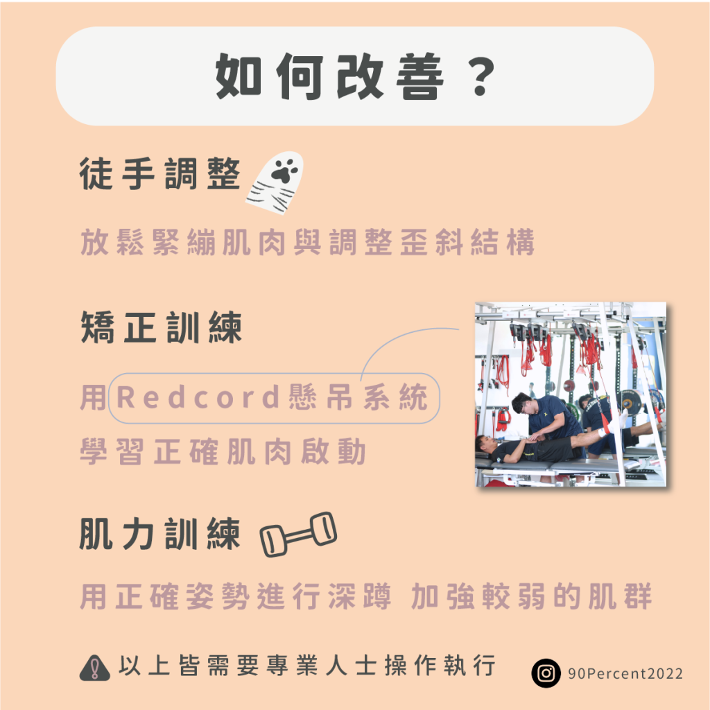 防護員先進行徒手調整,配合Record的懸吊系統學習正確啟動肌肉,最後使用正確姿勢重新進行深蹲,加強較弱的肌群。。