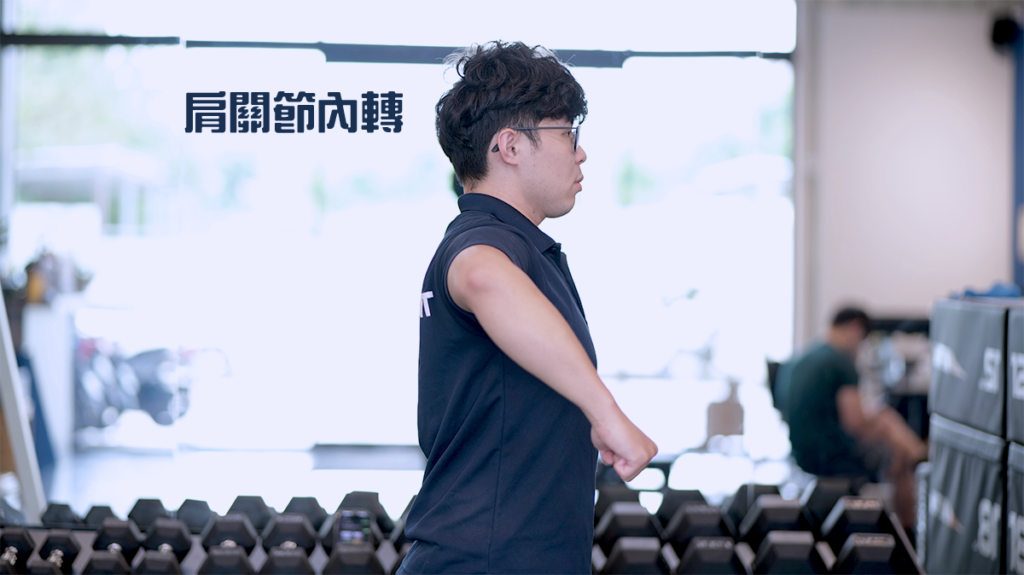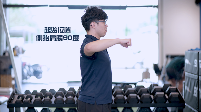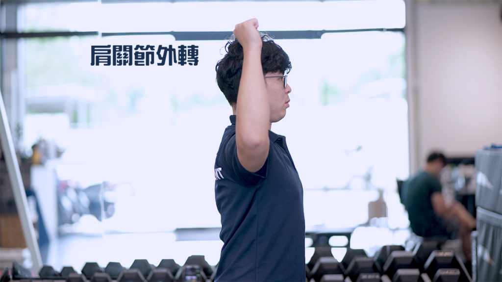 側抬肩膀90度(外展90度)屈肘90度,做肩關節內轉、外轉